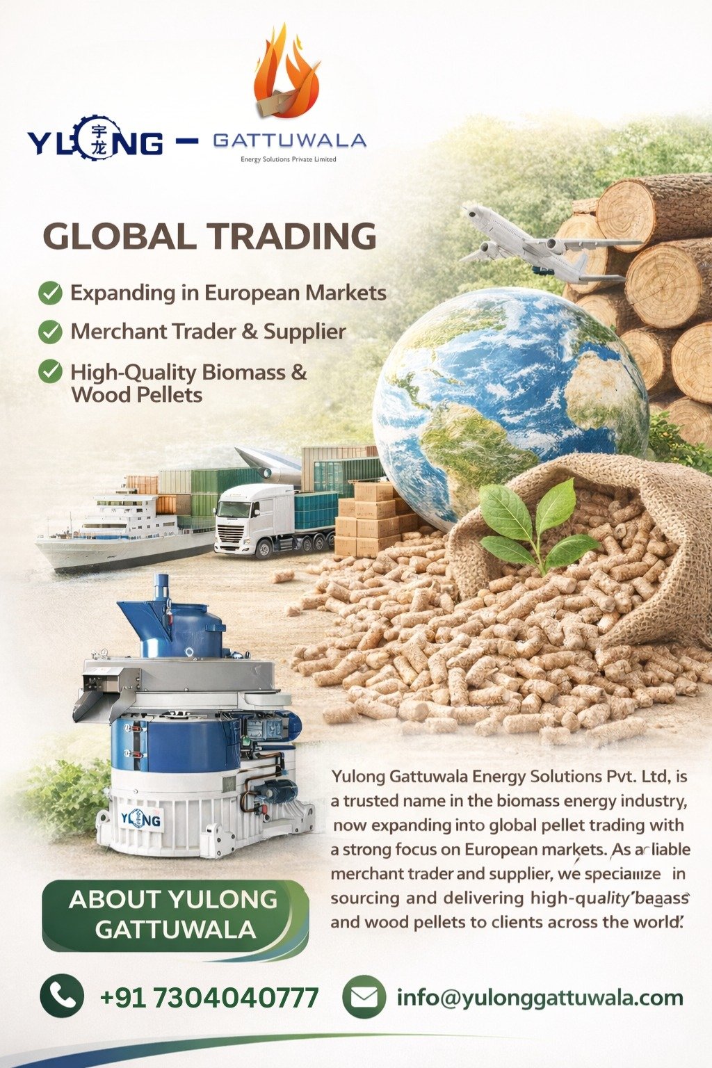 Yulong Gattuwala Energy is a leading biomass pellet machine manufacturer and supplier in India, providing high-quality solutions for biomass fuel production. Our advanced pelleting machines are designed for efficiency, durability, and cost-effectiveness, making them ideal for businesses and industries looking to convert biomass waste into sustainable energy sources.