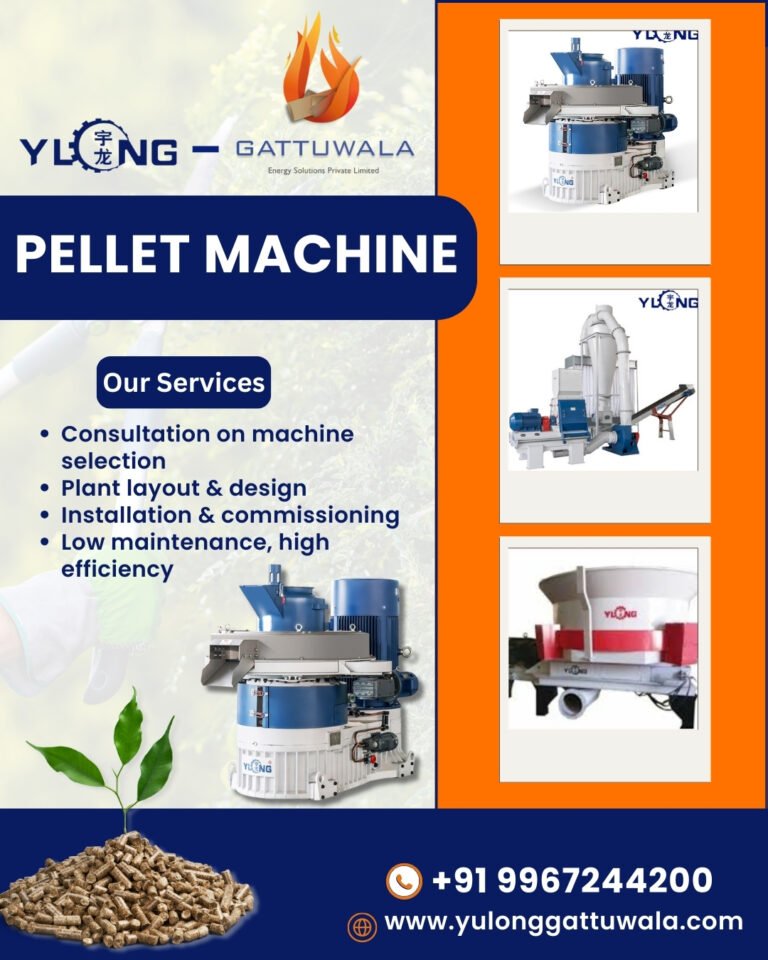 Yulong-Gattuwala has become one of the most trusted names in biomass pellet technology. Known for robust machines, advanced automation, and government subsidy support in India, the company offers complete pellet plant solutions. Their machines are designed for agriculture waste, rice husk, bagasse, and wood residues.